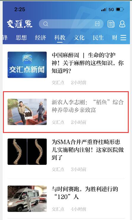 3月29日,交汇点以“新农人李志刚:“稻鱼”综合种养带动乡亲致富”为题,报道了畜牧兽医学院学子的创业事迹。